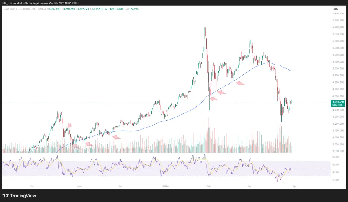 قیمت طلا (XAU/USD) در آغاز هفته گذشته با یک سقوط شدید تا محدوده ۴۱۰۰ دلار مواجه شد، اما بهسرعت مسیر خود را تغییر داد و تا حوالی ۴۴۰۰ دلار بازگشت. با این حال، ادامه تنشها در خاورمیانه و سیگنالهای متناقض درباره جنگ آمریکا و ایران باعث شده روند صعودی طلا پایدار نباشد.