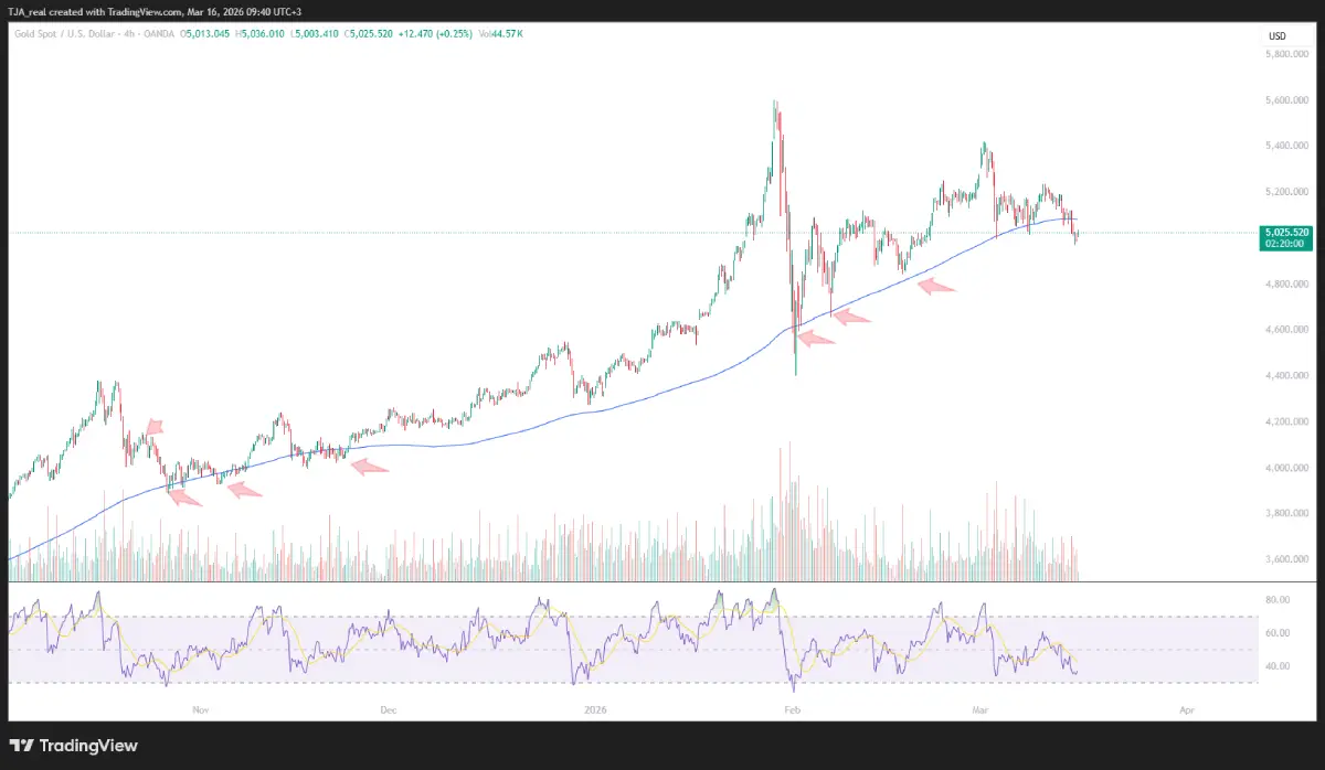 در حال حاضر، سطح ۵۰۰۰ دلار به مهمترین میدان نبرد خریداران و فروشندگان تبدیل شده و رفتار قیمت در اطراف این محدوده، مسیر بعدی طلا را مشخص خواهد کرد.