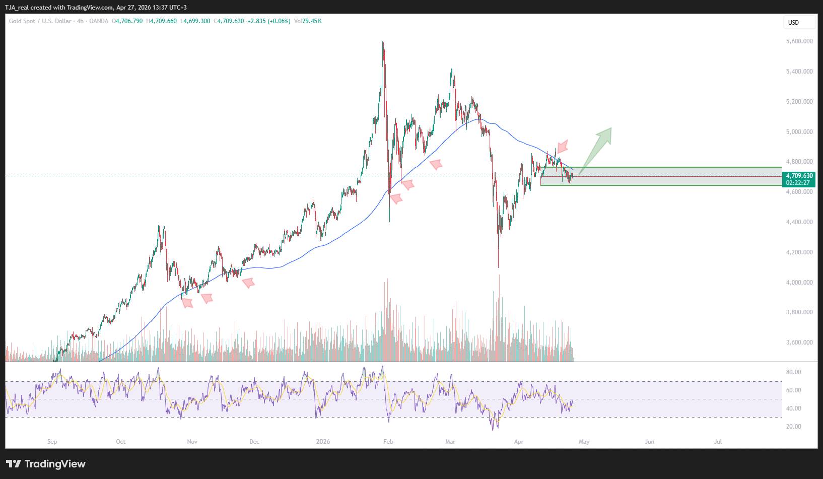 ۴۷۰۰ – ۴۶۹۰ دلار (فیبوناچی ۵۰٪ و SMA50)